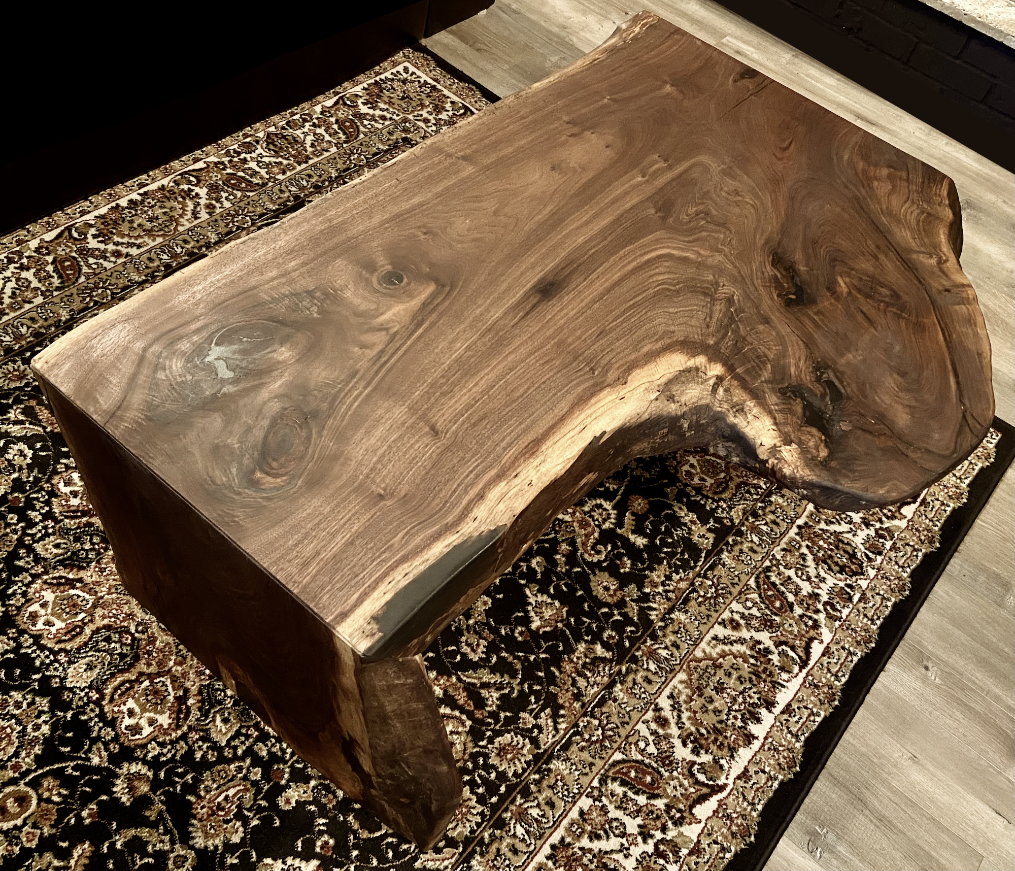 Natural Modern Rustic Live Edge Walnut Wood Waterfall Coffee Table