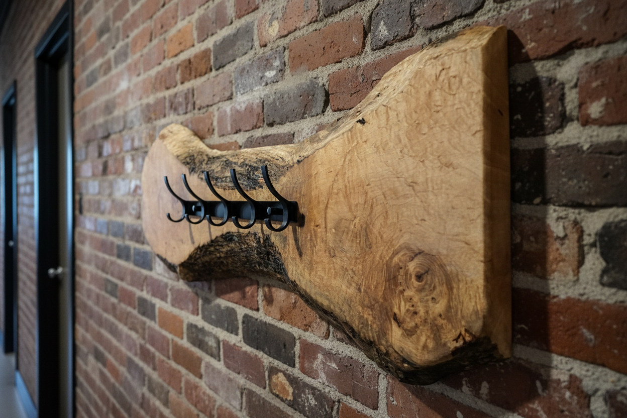 Rustic Modern Live Edge Maple Slab Wall Mount Coat Rack Organizer Wall Art